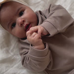 Vi har brugt en blanding af bambus og økologisk bomuld for at skabe et materiale, som din baby kan slappe af og lege i hele dagen!