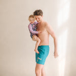 Hvorfor skal den lille have alt det sjove? Match dem denne sommer med vores hurtigtørrende badebukser i UPF 50+ stof.