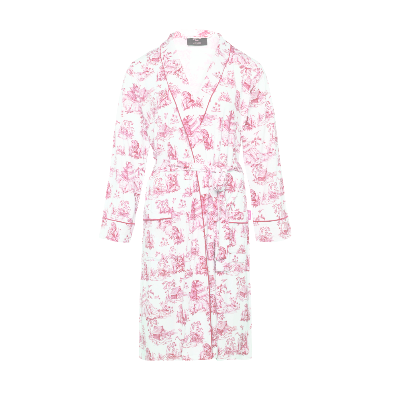 Indulge in the finest of fabrics with our Toile de Jouy bamboo robe.