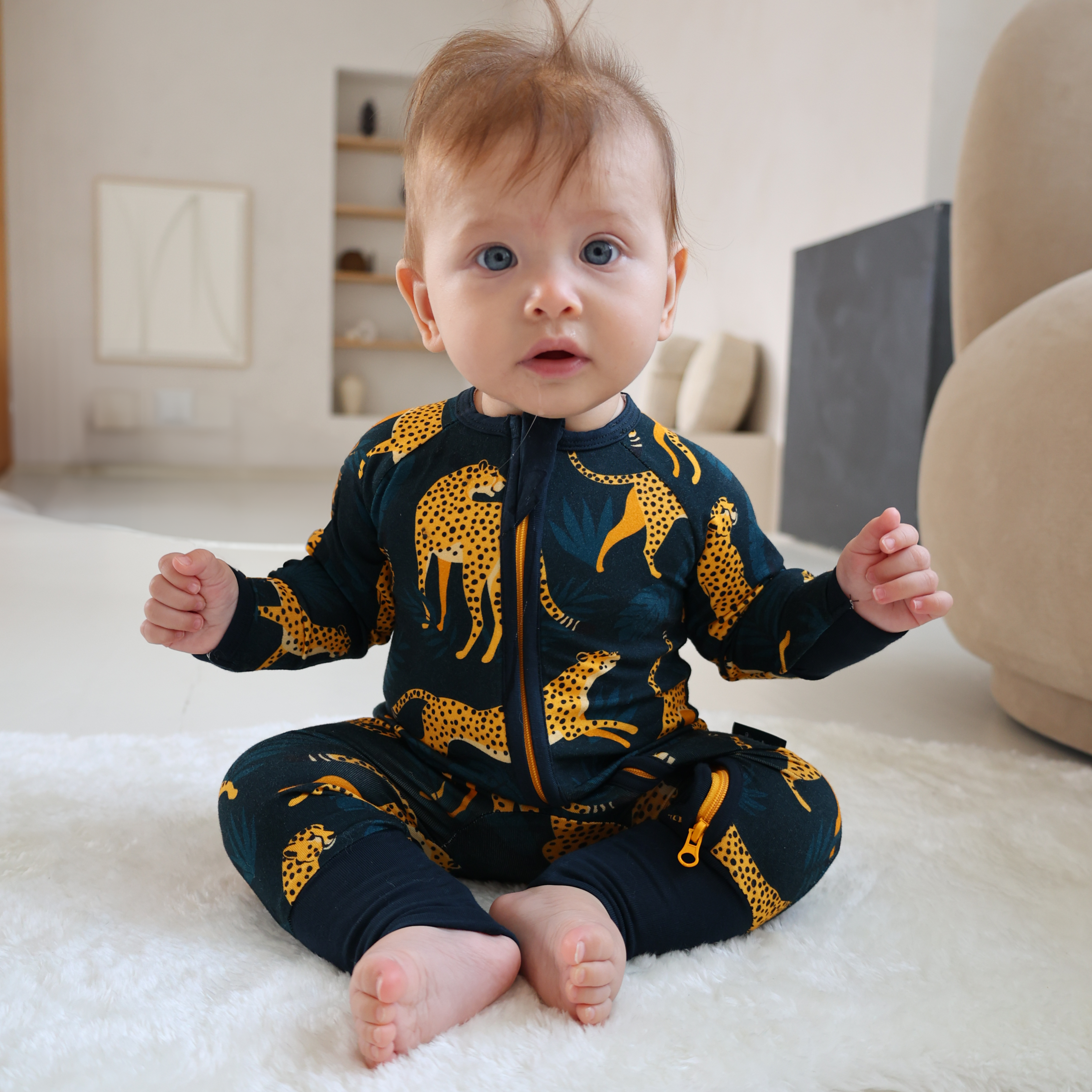 Escape diaper-change chaos with our revolutionary two-way safety zips. Bottom-up for quick changes, top-down for full outfits.