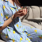 Våra pyjamasar har mycket stretch och har en smickrande passform, oavsett storlek. De är också perfekta om du väntar barn tack vare det mjuka midjebandet.