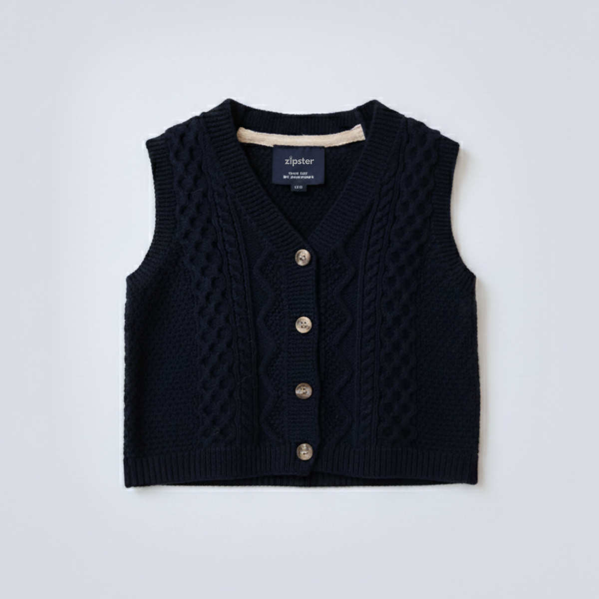 Stickad bomullsväst marinblå