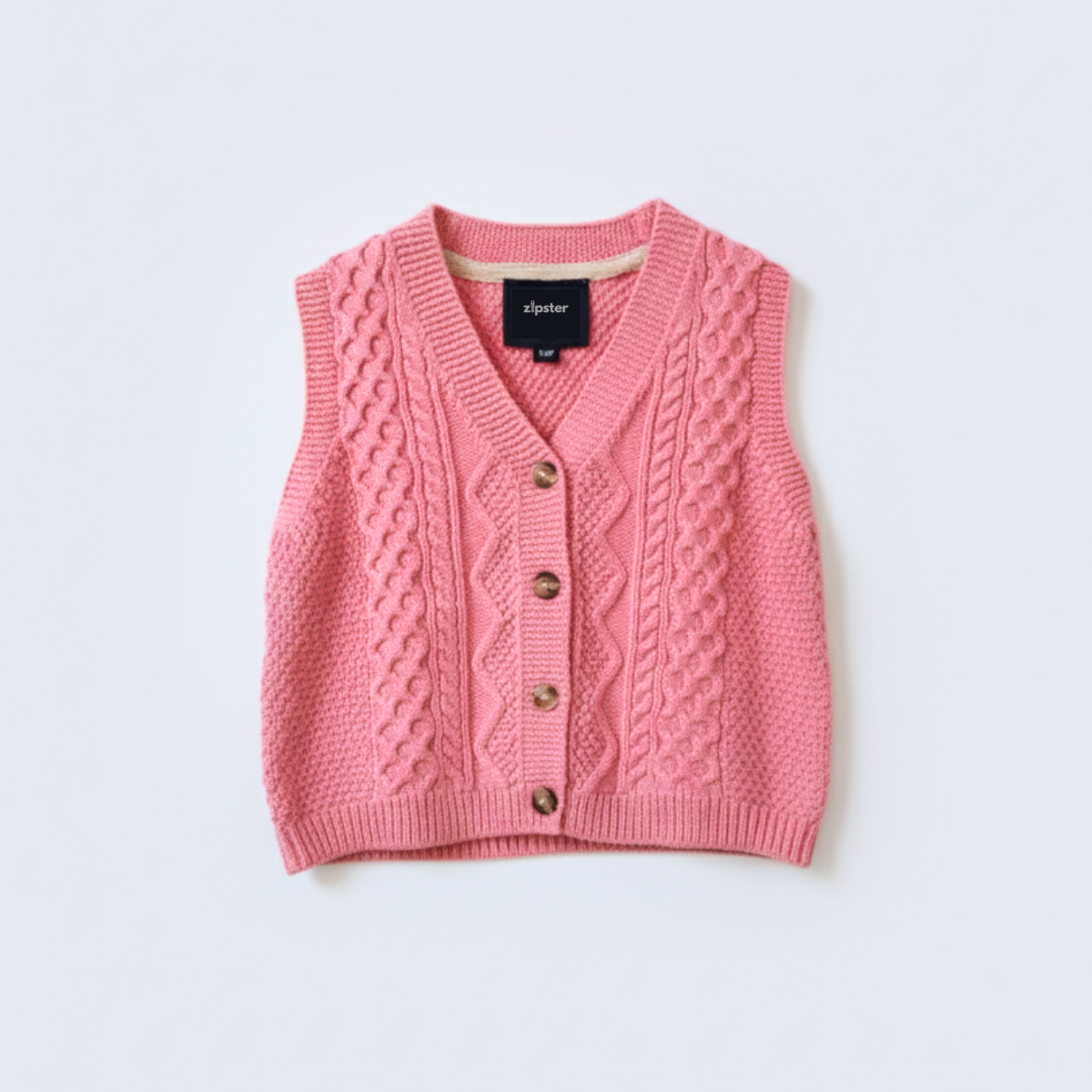 Stickad bomullsväst rosa