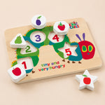 Detta lekfulla, iögonfallande träformspussel med Eric Carles berömda larv är perfekt för att introducera små barn till form, färg och siffror, samt för att hjälpa till att utveckla hand-öga-koordination och finmotorik.
