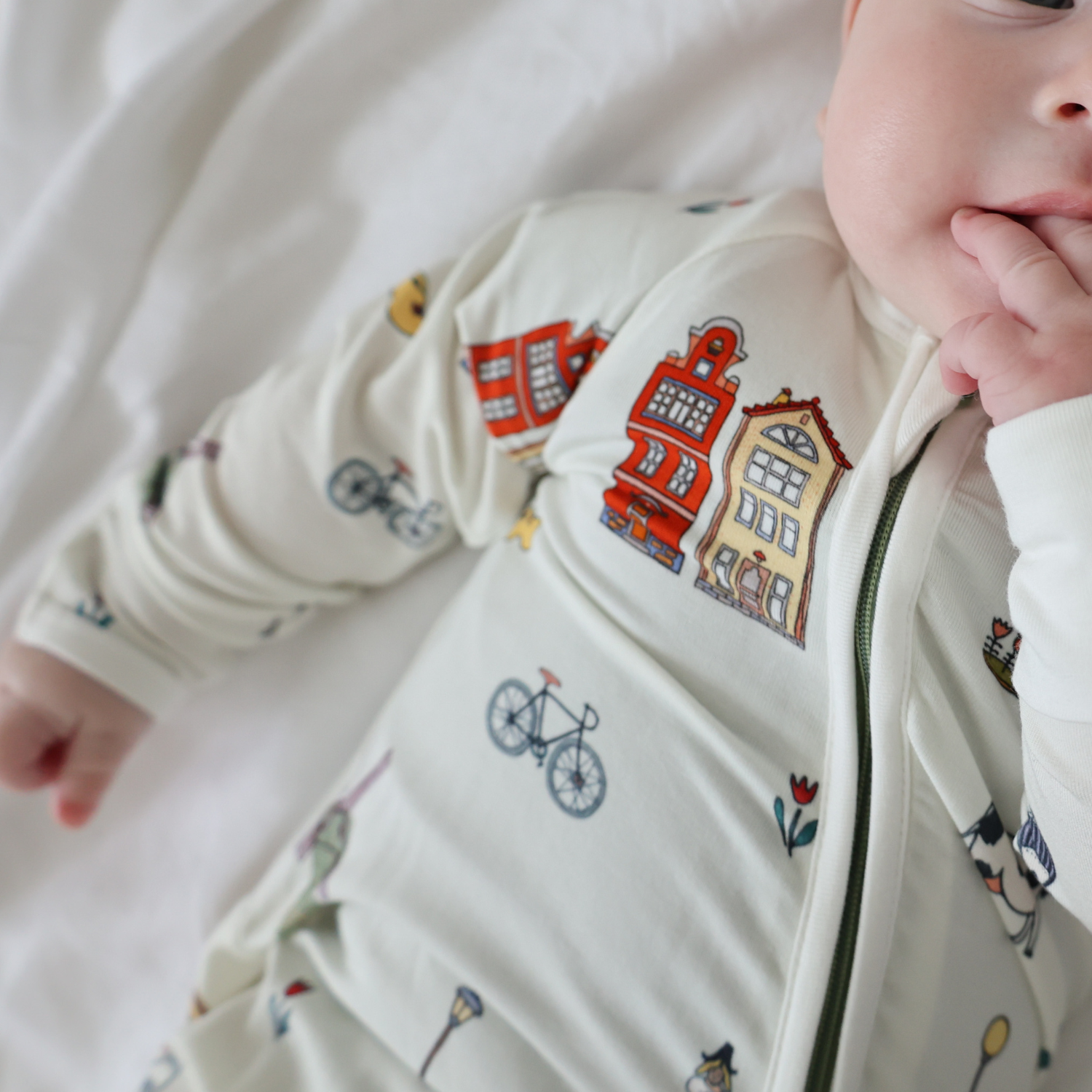 Eftersom vårt lyxiga bambutyg är så känsligt bör du undvika att tvätta det tillsammans med plagg som har blixtlås, knappar eller hårdvara, eftersom det kan uppstå repor. För bästa skötsel, tvätta separat med andra babyartiklar.