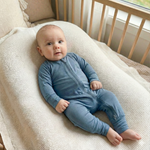 Eftersom vårt lyxiga bambutyg är så känsligt bör du undvika att tvätta det tillsammans med plagg som har blixtlås, knappar eller hårdvara, eftersom det kan uppstå repor. För bästa skötsel, tvätta separat med andra babyartiklar.